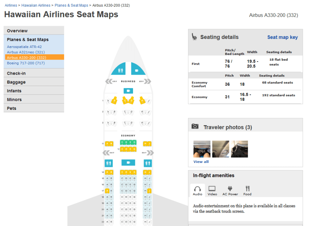 I like the website SEAT GURU https://www.seatguru.com/ for my flight next week, we are using miles and flying from Portland to Honolulu.
