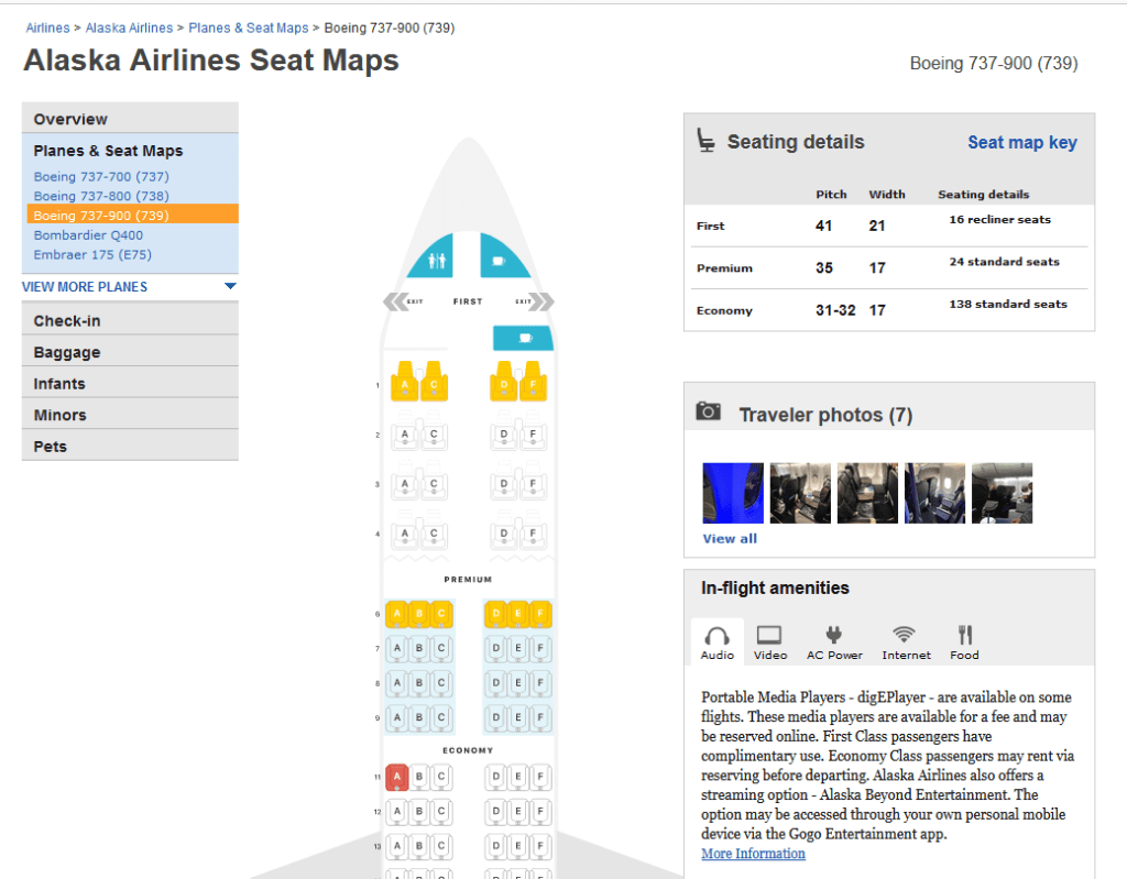Here is the comfort class video on Alaska airlines